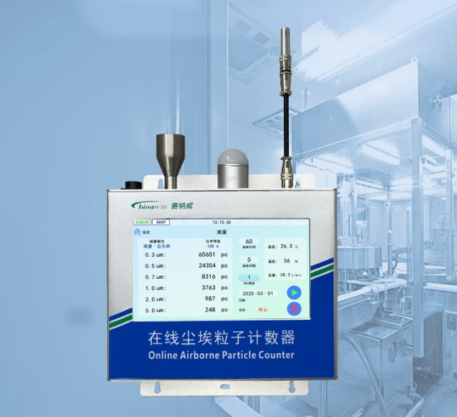 - CW-OPC601S塵埃粒子計數器是賽納威公司最新推出的可以測試0.1um的在線式粒子計數器,該產品采用觸摸屏設計,可本地設置測試參數,標配的聲光報警裝置可及時反饋環境的潔凈狀態,采用光散射原理,可準確的監測并計算單位體積內不同粒徑的懸浮顆粒物的個數,進而判斷潔凈車間等級;通過RJ45網絡接口、WiFi、RS485等將數據送給PC終端,實現7*24實時遠程自動監測。該產品被廣泛應用于芯片半導體集成電路廠房、醫藥、食品、電子、鋰電池等行業領域,是潔凈車間監測的重要利器。